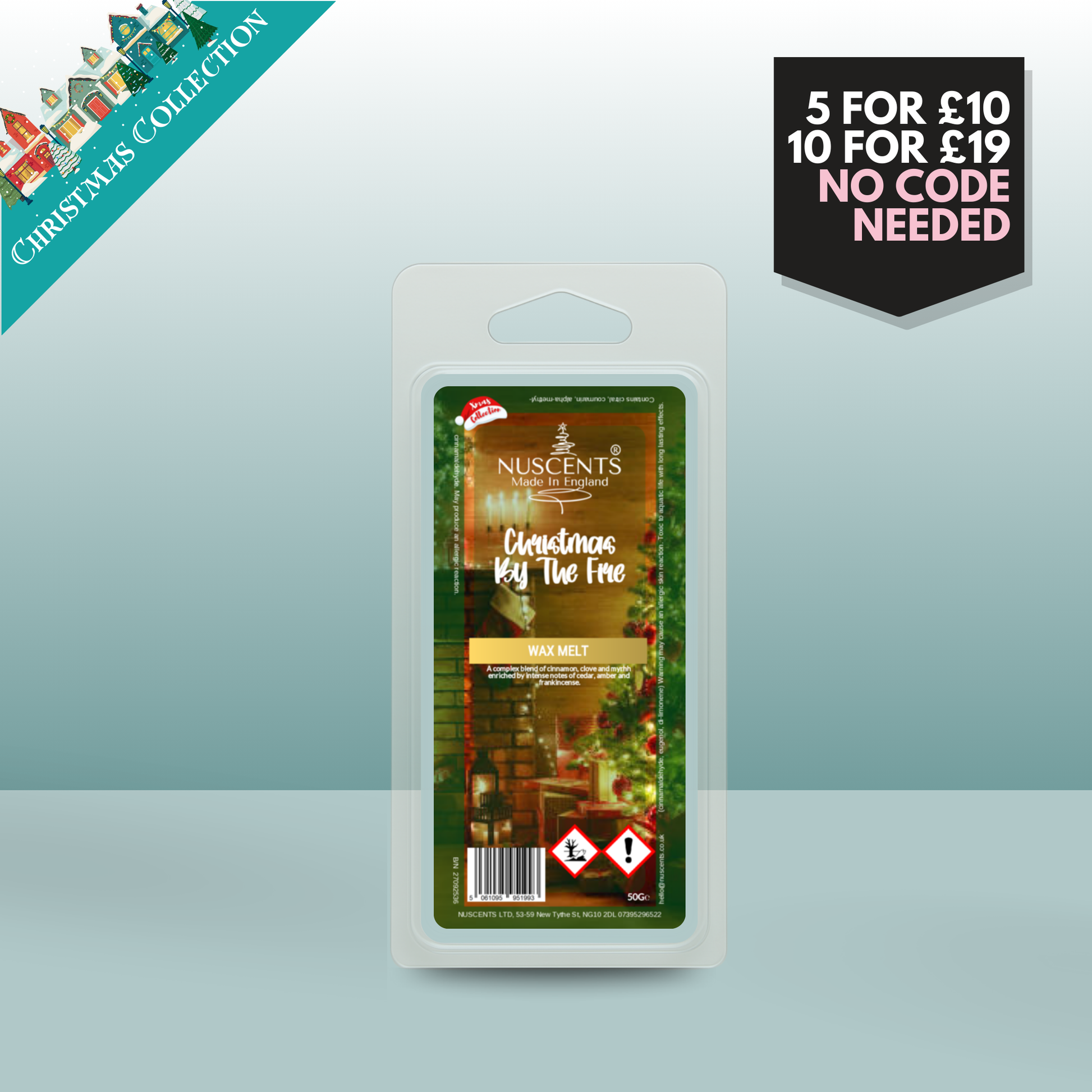 50g CHRISTMAS Christmas By The Fire Scented Wax Melt Poured with a full 10% fragrance load for a bold throw and designed to work in both tealight burners and higher-wattage electric warmers. Made In England.