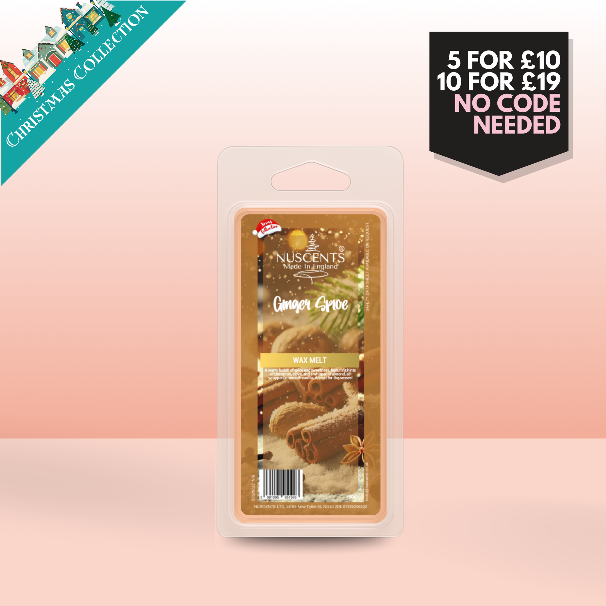50g Ginger Spice Scented Wax Melt Poured with a full 10% fragrance load for a bold throw and designed to work in both tealight burners and higher-wattage electric warmers. Made In England.