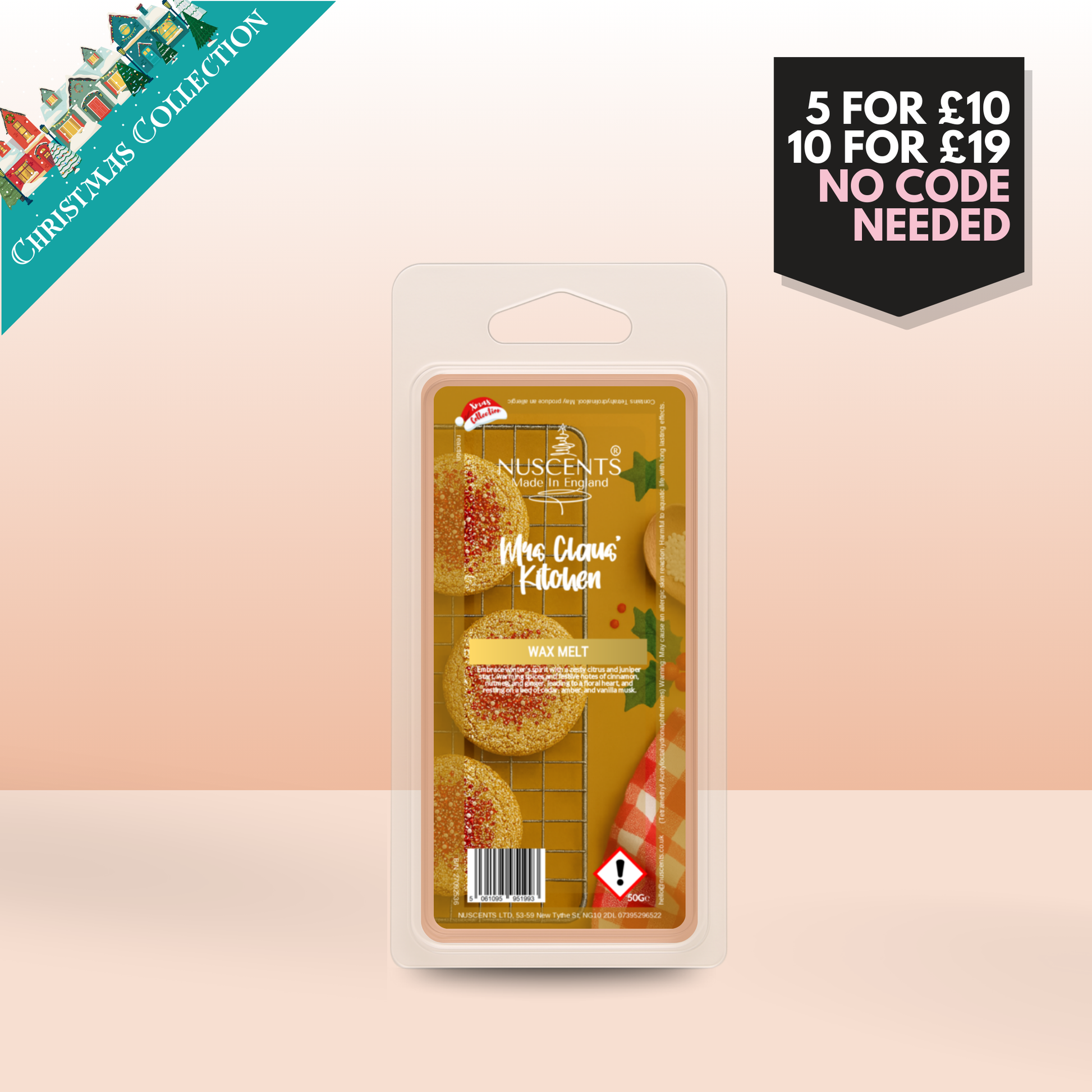 50g Mrs Claus Kitchen Scented Wax Melt Poured with a full 10% fragrance load for a bold throw and designed to work in both tealight burners and higher-wattage electric warmers. Made In England.