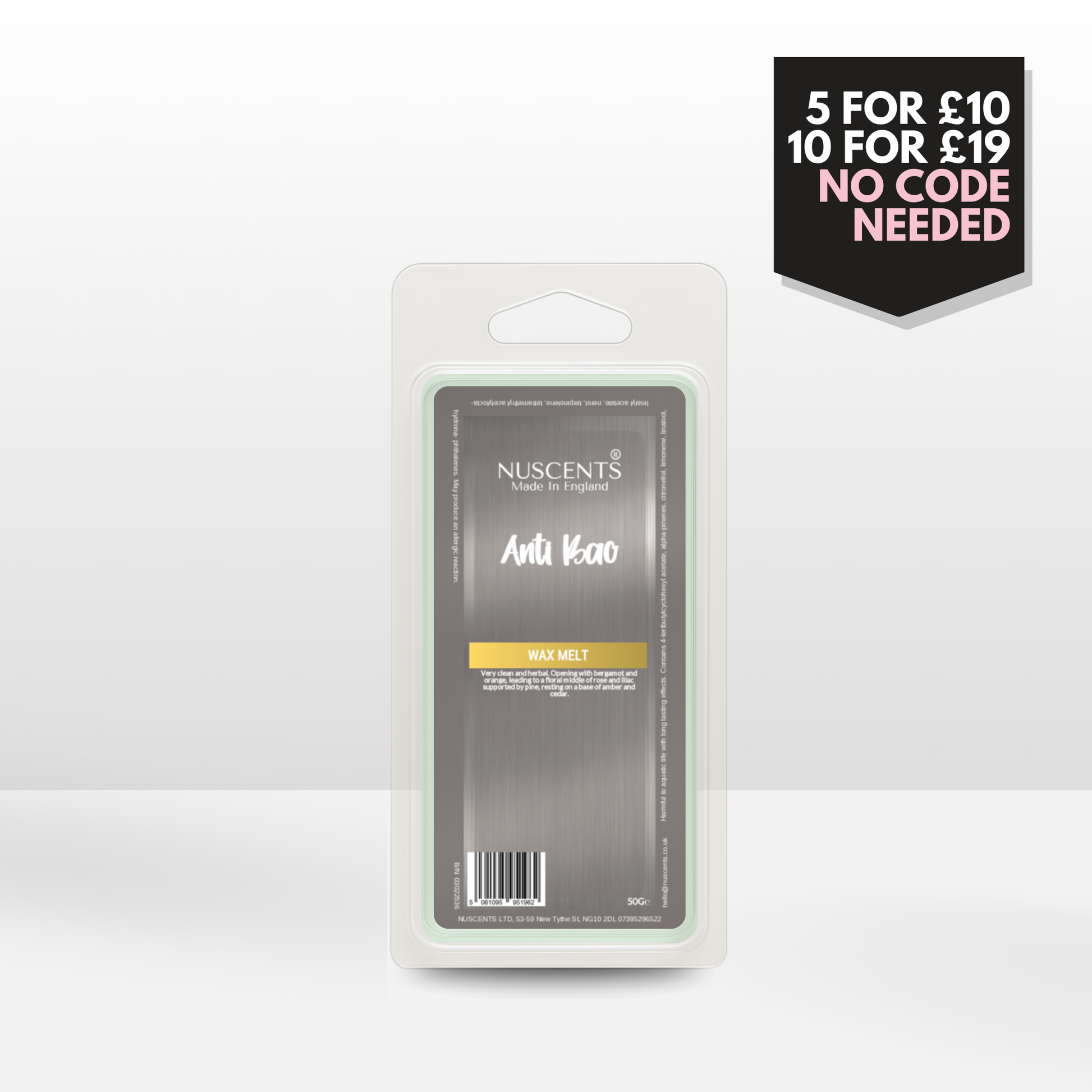 50g *LAST CHANCE Anti Bac Scented Wax Melt Poured with a full 10% fragrance load for a bold throw and designed to work in both tealight burners and higher-wattage electric warmers. Made In England.