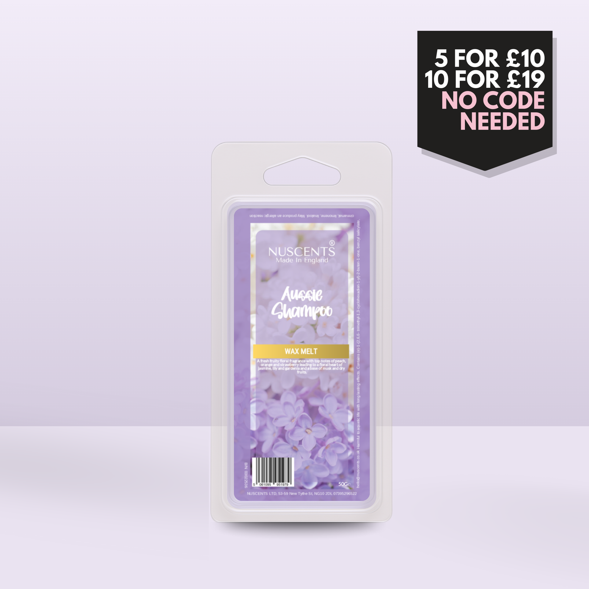 50g Aussie Shampoo Scented Wax Melt Poured with a full 10% fragrance load for a bold throw and designed to work in both tealight burners and higher-wattage electric warmers. Made In England.