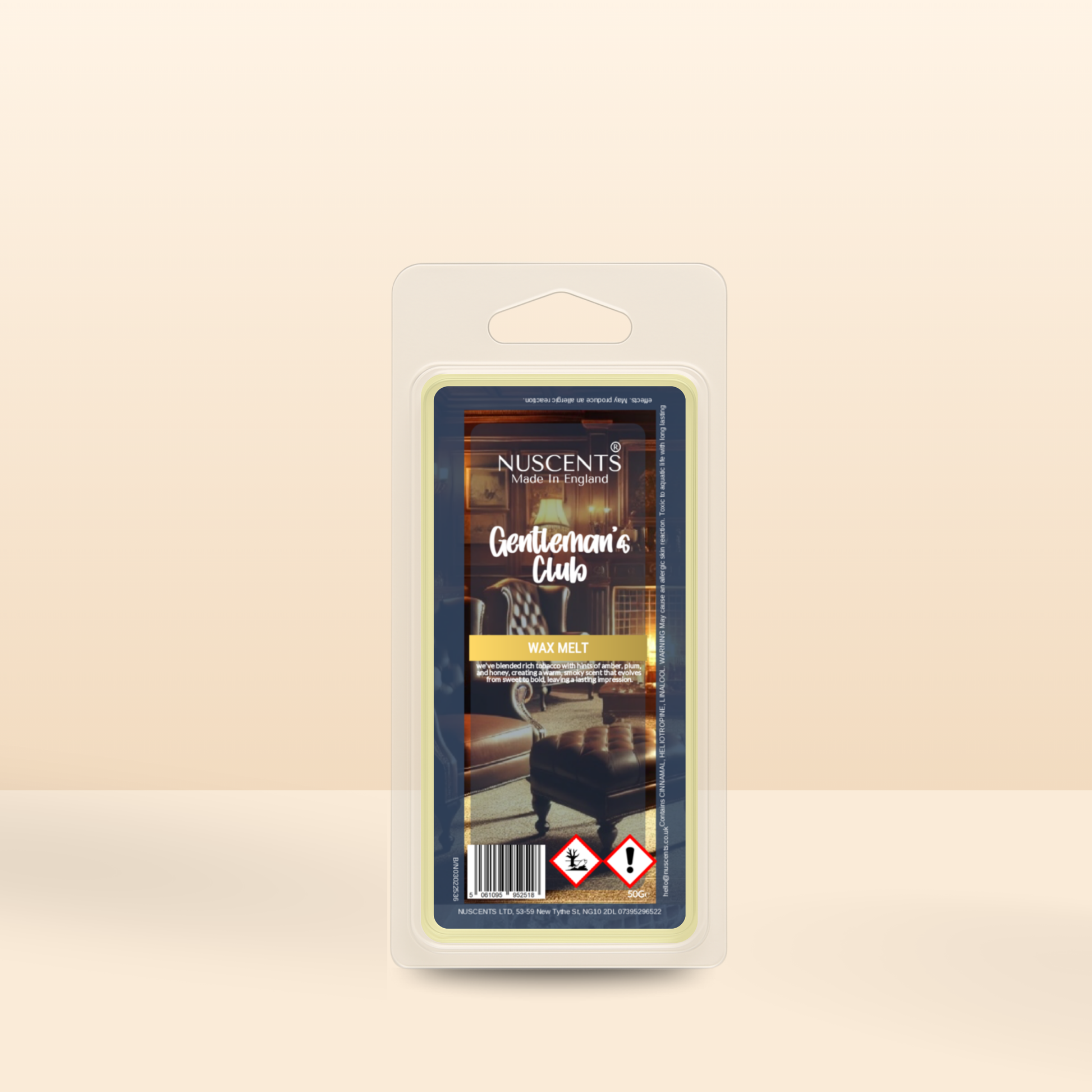 50g *LAST CHANCE Gentleman's Club Scented Wax Melt Poured with a full 10% fragrance load for a bold throw and designed to work in both tealight burners and higher-wattage electric warmers. Made In England.