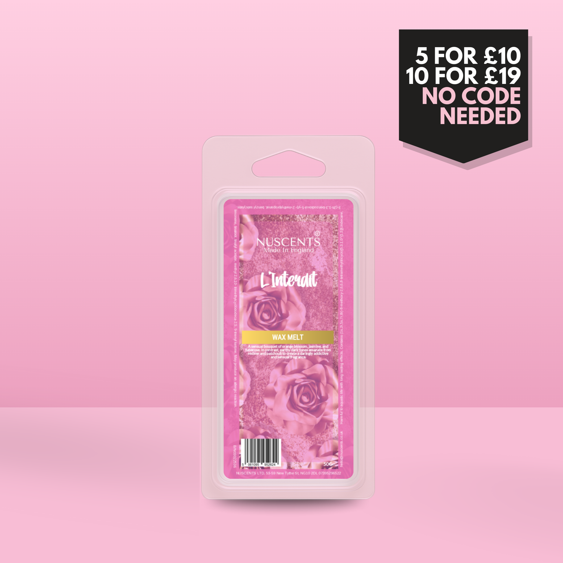 50g *LAST CHANCE L'Interdit Scented Wax Melt Poured with a full 10% fragrance load for a bold throw and designed to work in both tealight burners and higher-wattage electric warmers. Made In England.