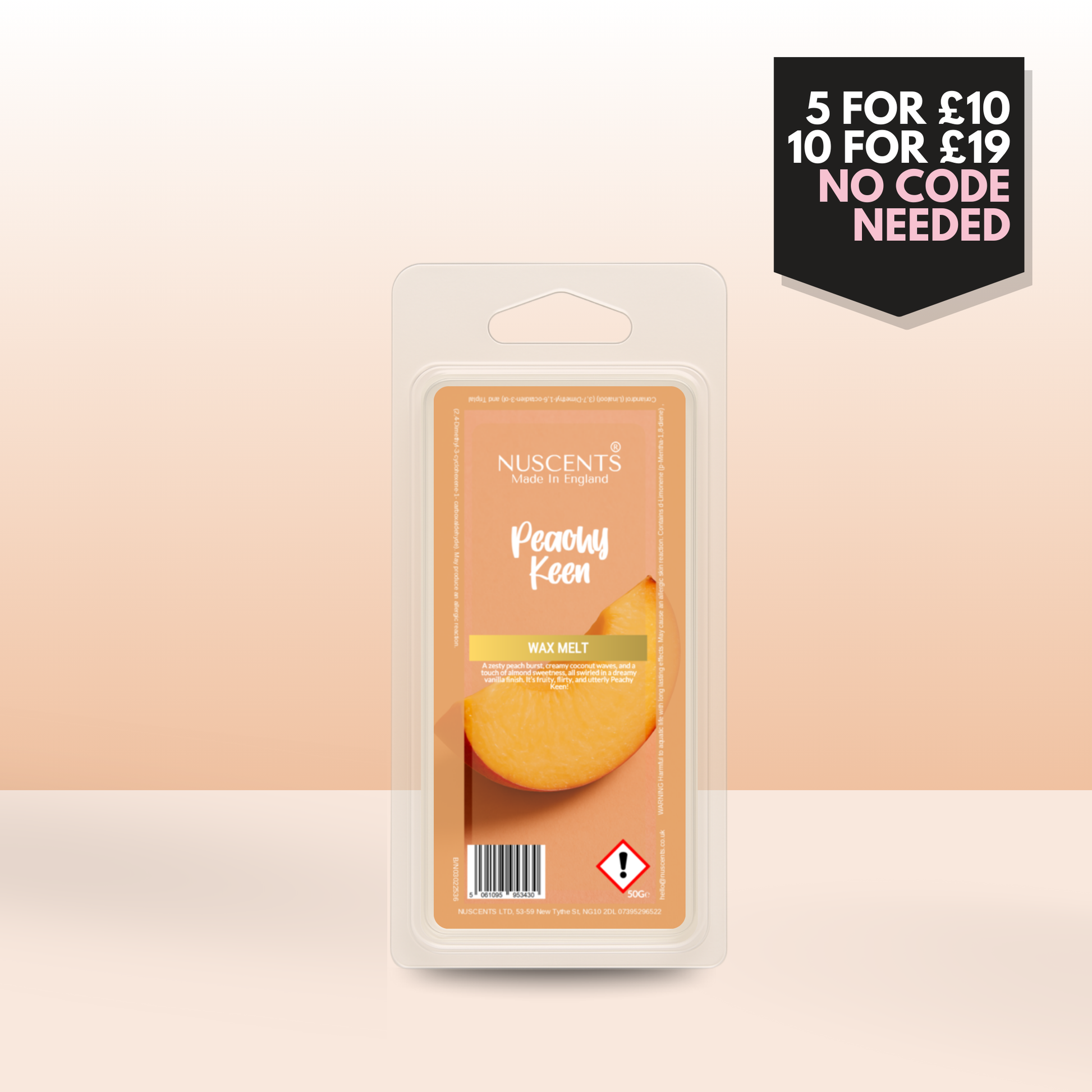 50g *LAST CHANCE Peachy Keen Scented Wax Melt Poured with a full 10% fragrance load for a bold throw and designed to work in both tealight burners and higher-wattage electric warmers. Made In England.