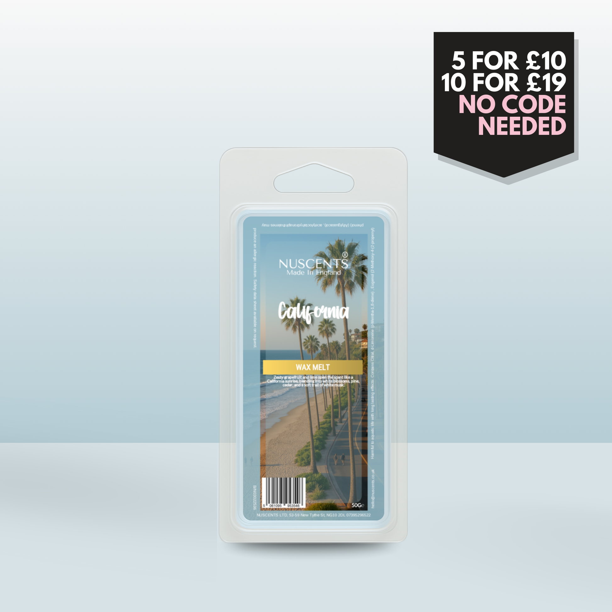 50g *NEW California Scented Wax Melt Poured with a full 10% fragrance load for a bold throw and designed to work in both tealight burners and higher-wattage electric warmers. Made In England.