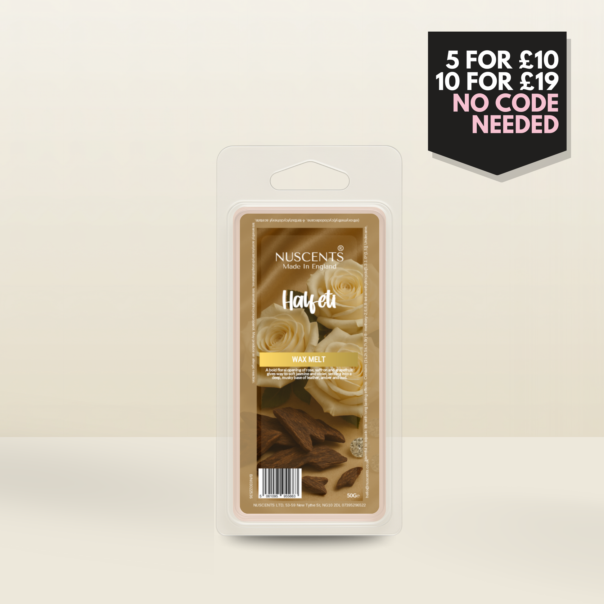 50g *NEW Halfeti Scented Wax Melt Poured with a full 10% fragrance load for a bold throw and designed to work in both tealight burners and higher-wattage electric warmers. Made In England.