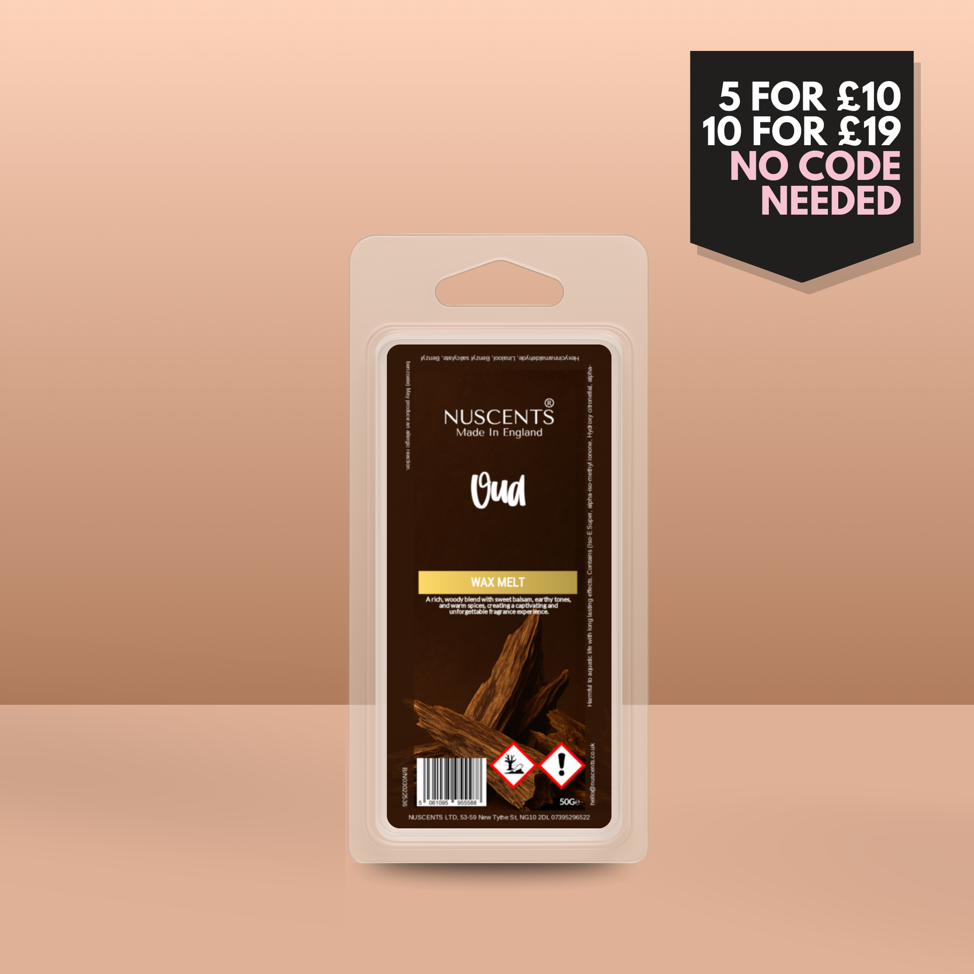 50g *NEW Oud Scented Wax Melt Poured with a full 10% fragrance load for a bold throw and designed to work in both tealight burners and higher-wattage electric warmers. Made In England.