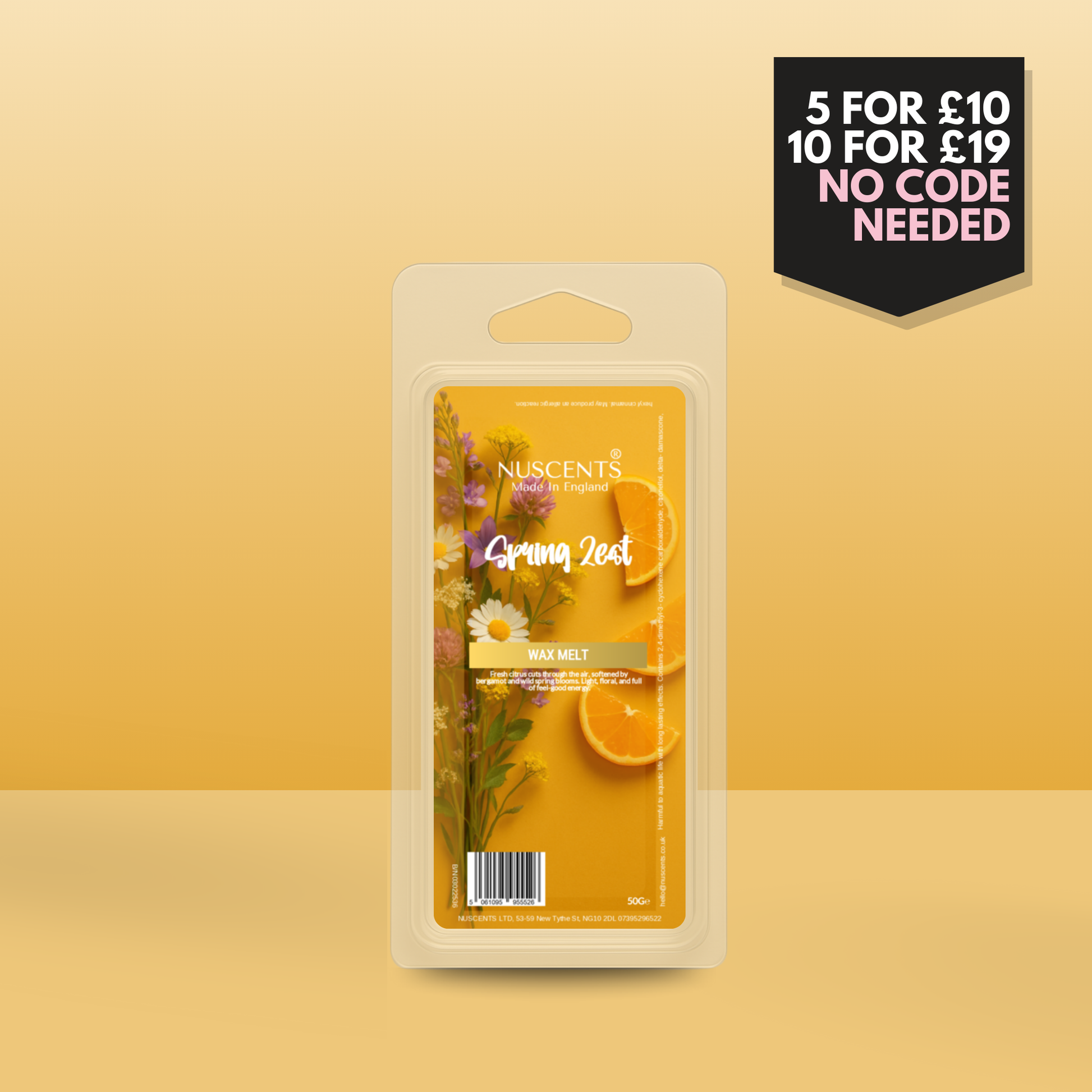 50g *NEW Spring Zest Scented Wax Melt Poured with a full 10% fragrance load for a bold throw and designed to work in both tealight burners and higher-wattage electric warmers. Made In England.