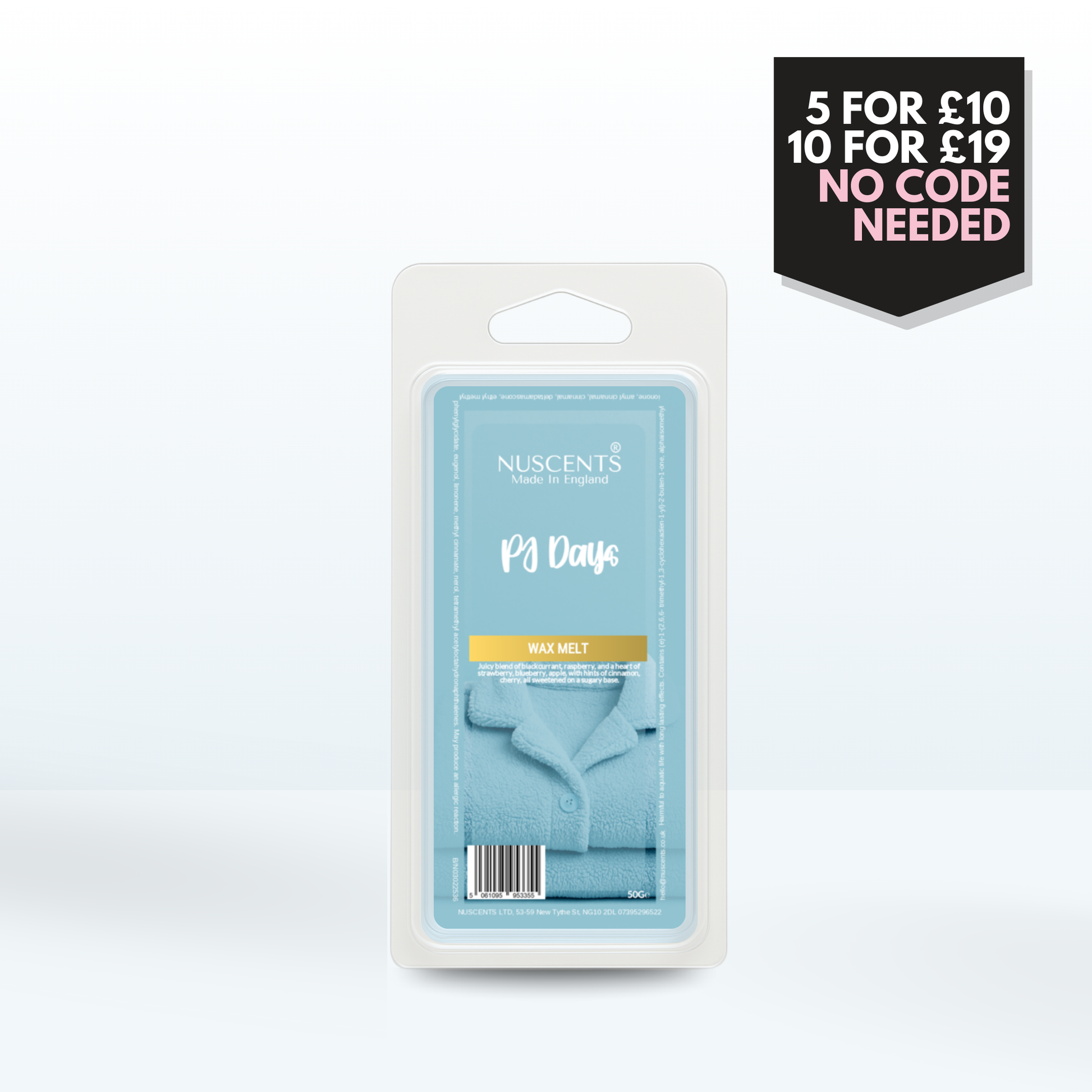50g PJ Days Scented Wax Melt Poured with a full 10% fragrance load for a bold throw and designed to work in both tealight burners and higher-wattage electric warmers. Made In England.