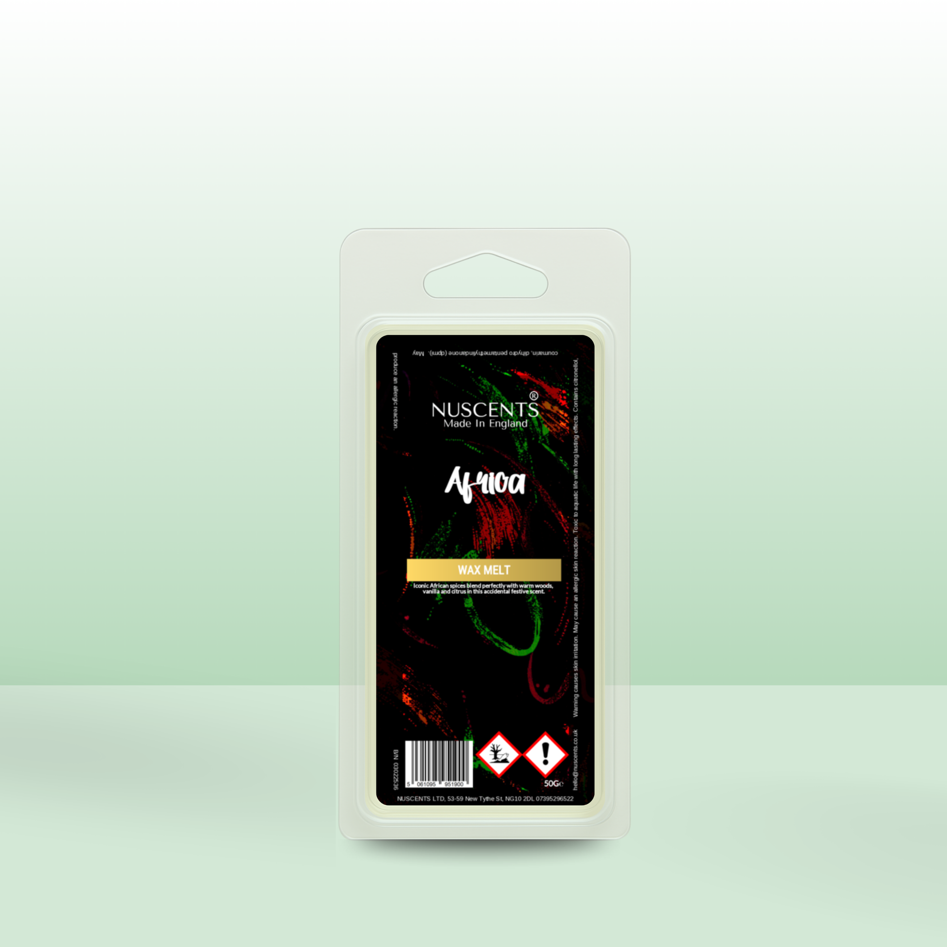 50g Africa Scented Wax Melt Poured with a full 10% fragrance load for a bold throw and designed to work in both tealight burners and higher-wattage electric warmers. Made In England.