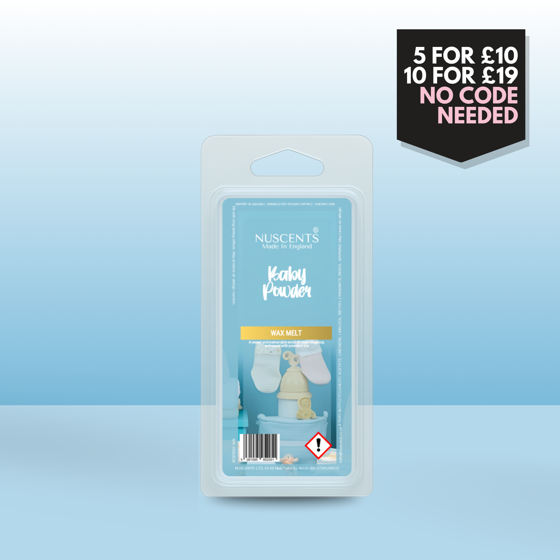 50g Baby Powder *V2* Scented Wax Melt Poured with a full 10% fragrance load for a bold throw and designed to work in both tealight burners and higher-wattage electric warmers. Made In England.