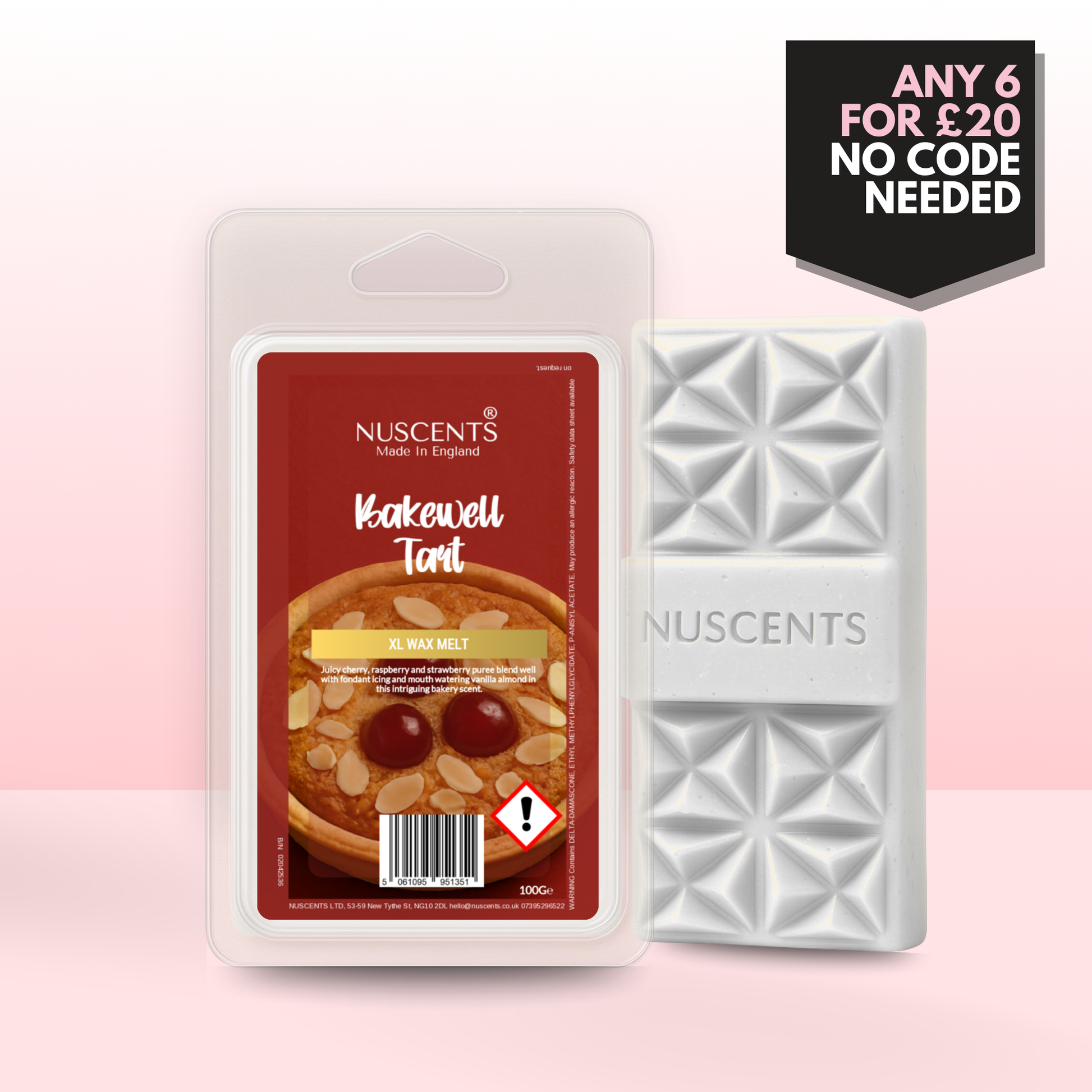 Bakewell Tart Wax Melt 100g XL A generous 100g wax melt - around twice the size of a standard wax melt - for incredible value and lasting fragrance. Contains multiple segments and large centrepiece wax chunk suitable for large wax warmers. Suitable for both tealight burners and higher-wattage electric warmers, each XL is poured with a full 10% fragrance load to give a strong, room-filling scent. The higher melting temperature ensures a slower release, so whilst early release is slower, you enjoy hours of fragrance from every piece.