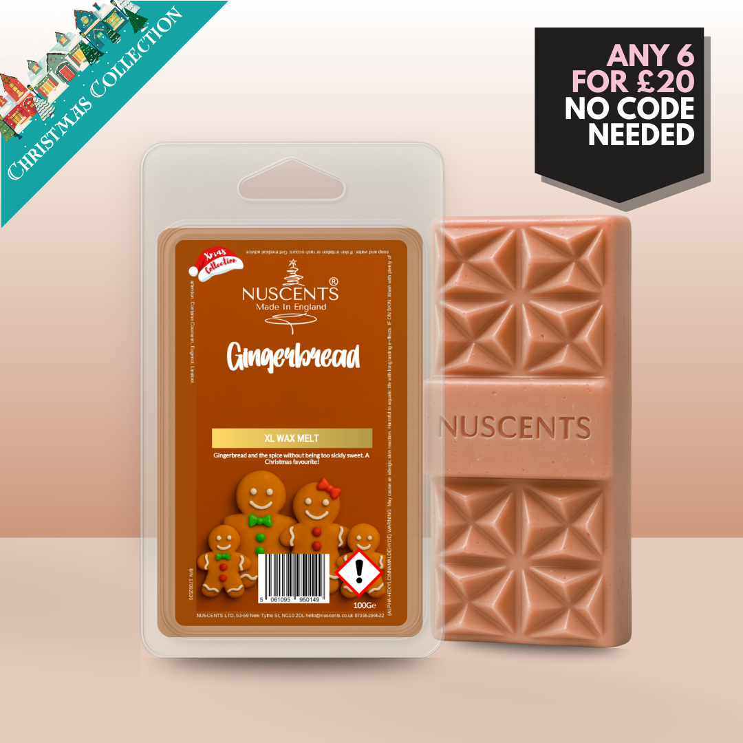 *CHRISTMAS Gingerbread Wax Melt 100g XL A generous 100g wax melt - around twice the size of a standard wax melt - for incredible value and lasting fragrance. Contains multiple segments and large centrepiece wax chunk suitable for large wax warmers. Suitable for both tealight burners and higher-wattage electric warmers, each XL is poured with a full 10% fragrance load to give a strong, room-filling scent. The higher melting temperature ensures a slower release, so whilst early release is slower, you enjoy hours of fragrance from every piece.
