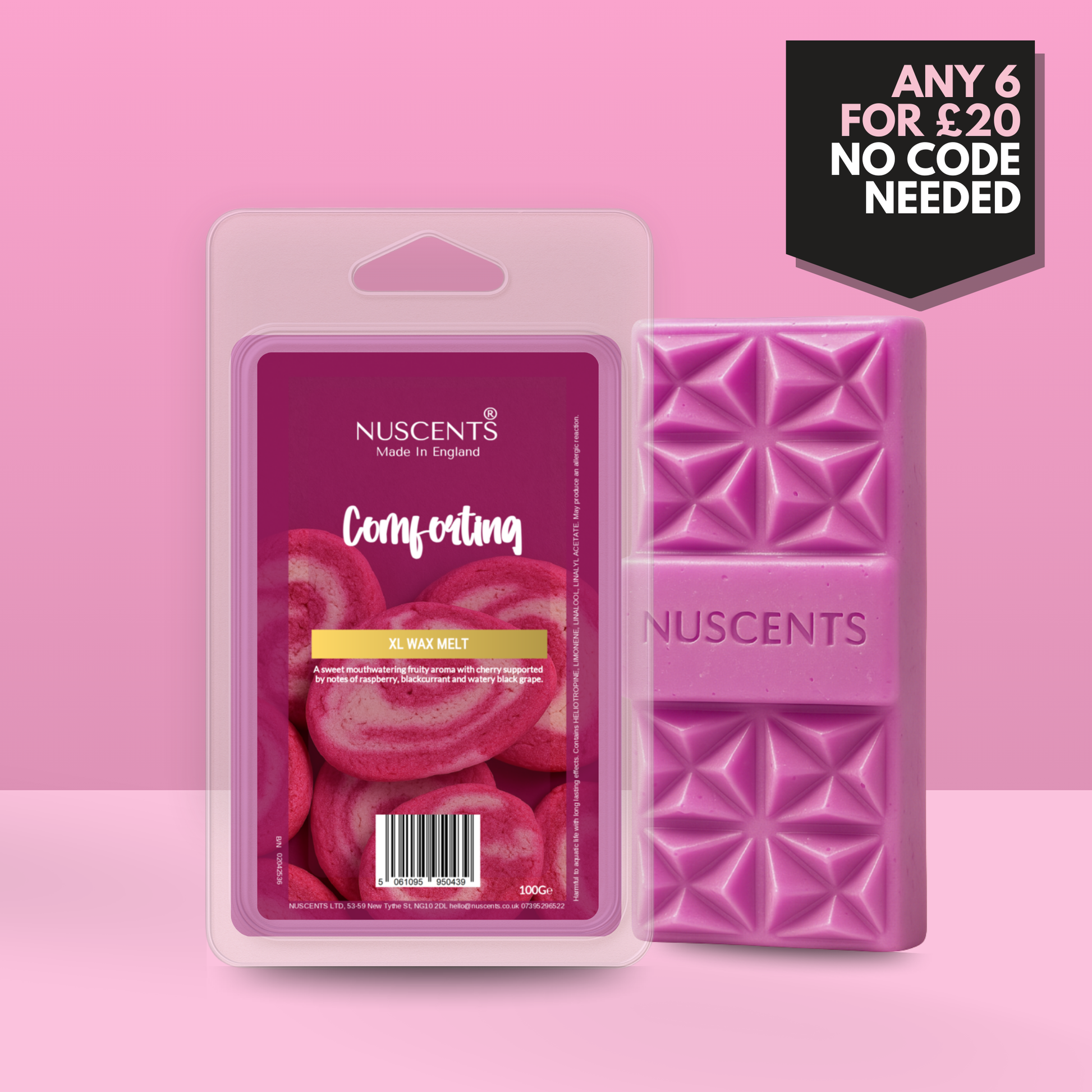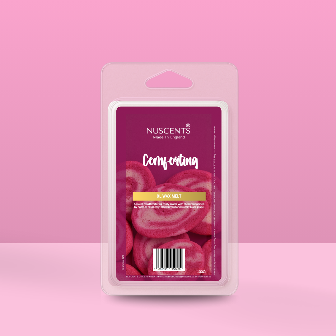 Comforting Wax Melt 100g XL A generous 100g wax melt - around twice the size of a standard wax melt - for incredible value and lasting fragrance. Contains multiple segments and large centrepiece wax chunk suitable for large wax warmers. Suitable for both tealight burners and higher-wattage electric warmers, each XL is poured with a full 10% fragrance load to give a strong, room-filling scent. The higher melting temperature ensures a slower release, so whilst early release is slower, you enjoy hours of fragrance from every piece.