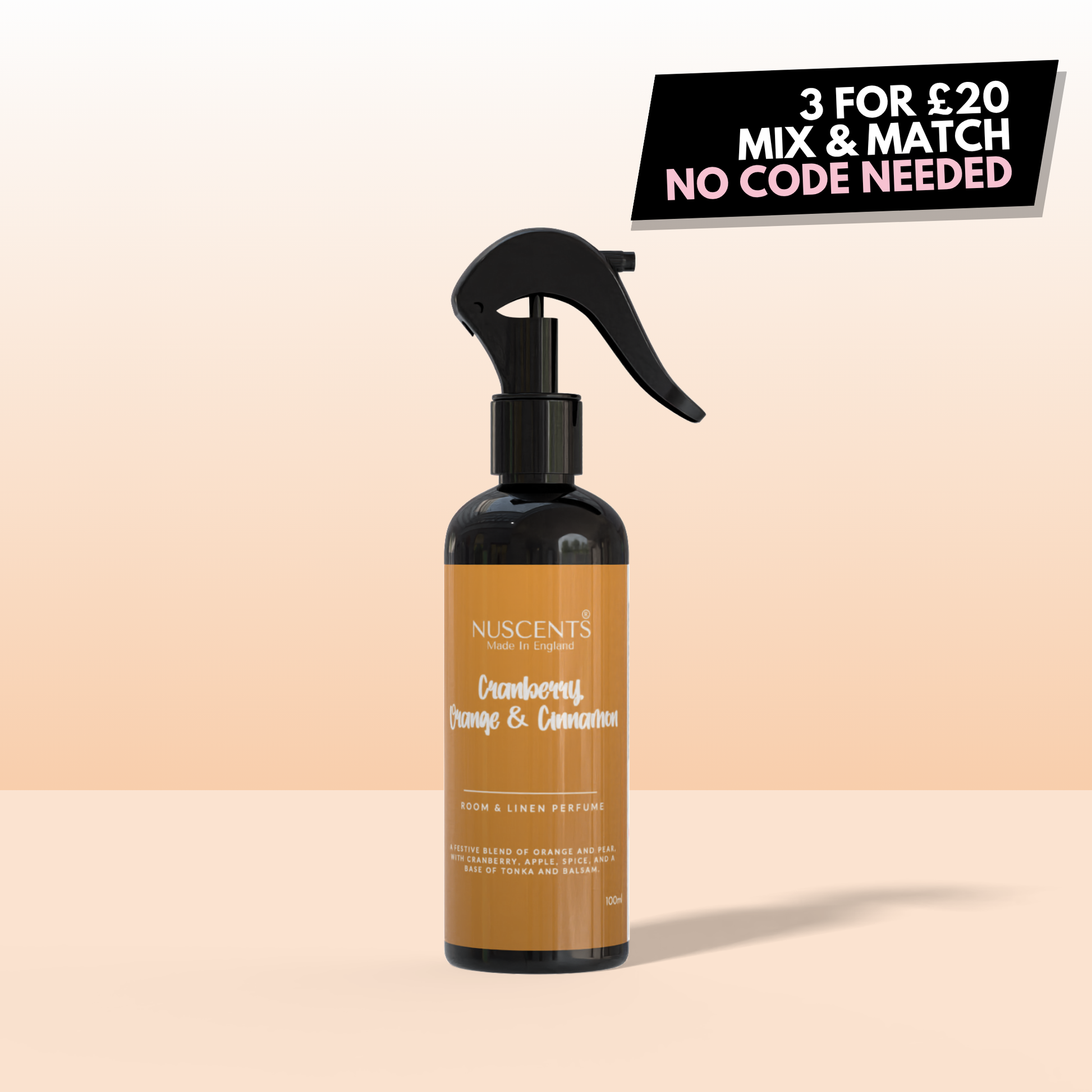 Quickly refresh any room with our Cranberry, Orange & Cinnamon Room & Linen Perfume Spray