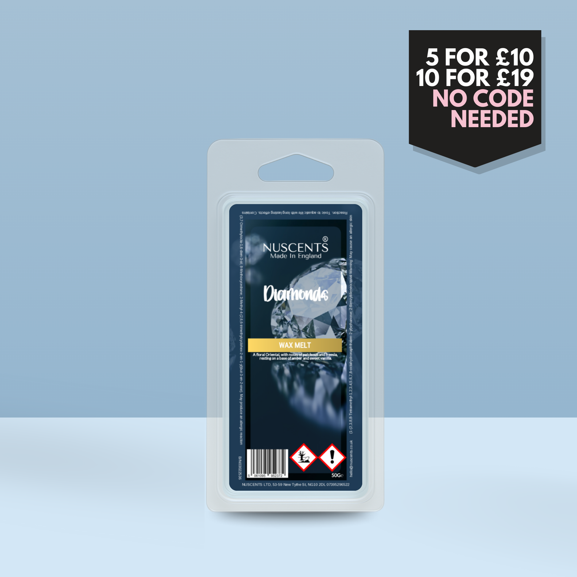 50g *LIMITED EDITION Diamonds Scented Wax Melt Poured with a full 10% fragrance load for a bold throw and designed to work in both tealight burners and higher-wattage electric warmers. Made In England.