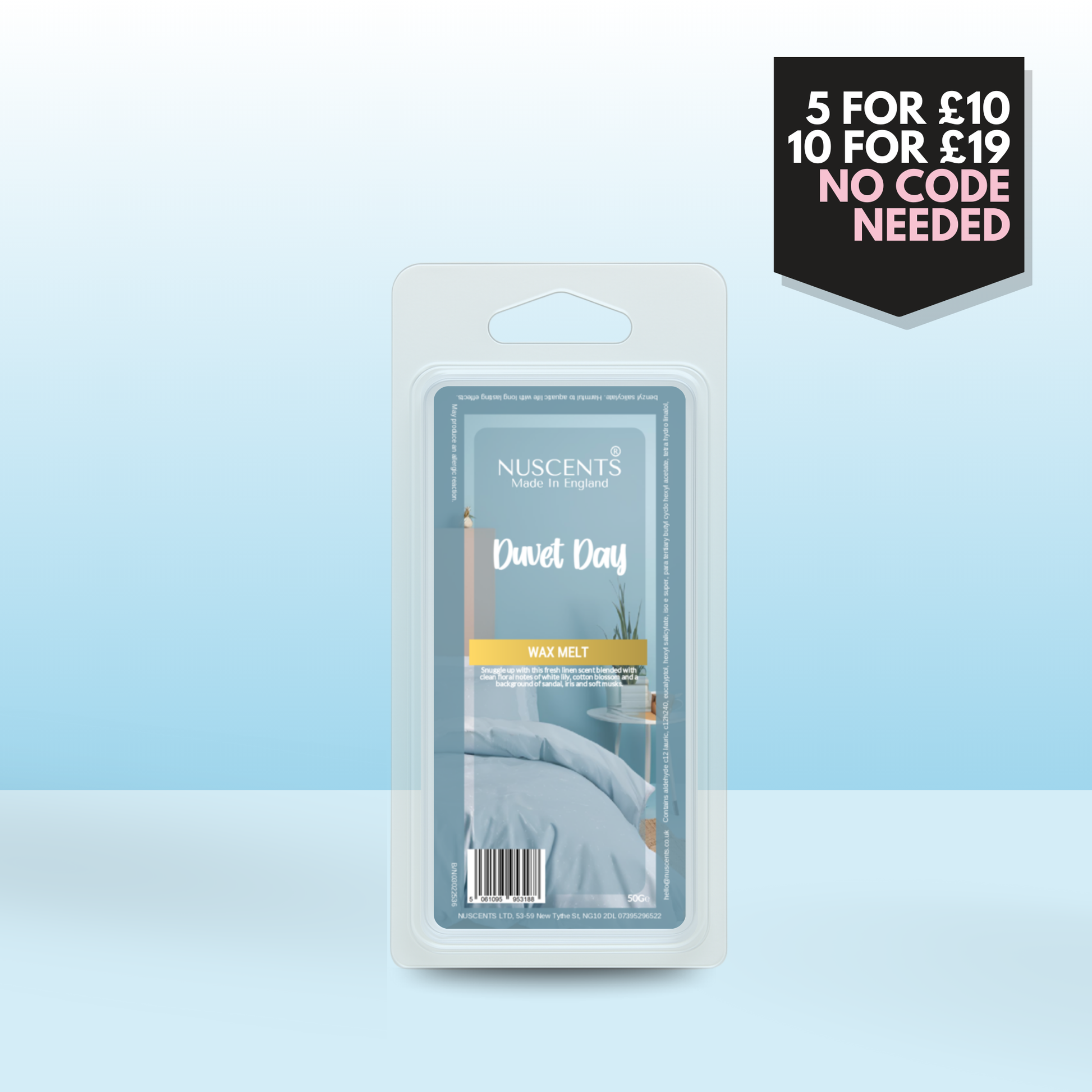 50g Duvet Day Scented Wax Melt Poured with a full 10% fragrance load for a bold throw and designed to work in both tealight burners and higher-wattage electric warmers. Made In England.