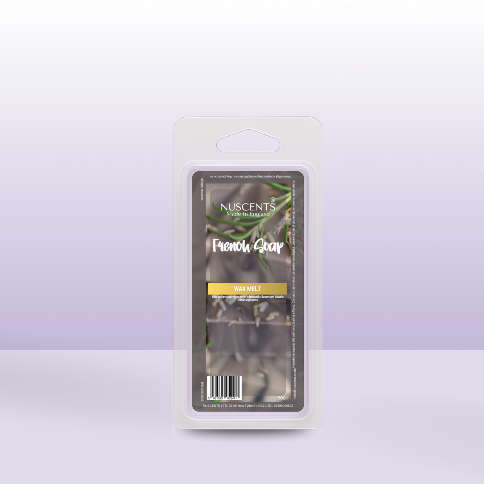 50g French Soap Scented Wax Melt Poured with a full 10% fragrance load for a bold throw and designed to work in both tealight burners and higher-wattage electric warmers. Made In England.