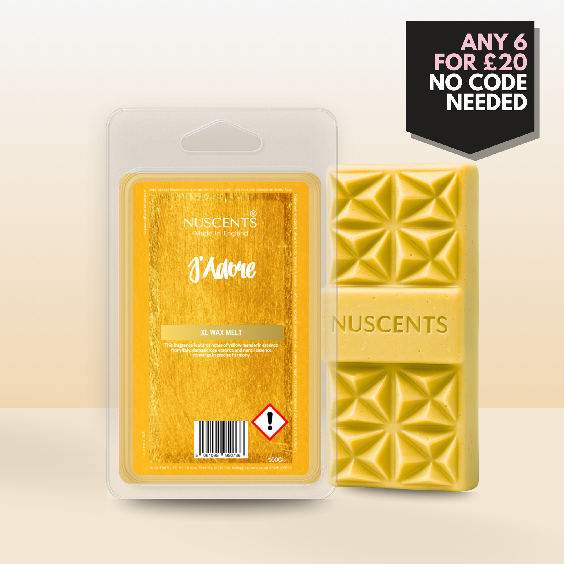 J'Adore Perfume Wax Melt 100g XL A generous 100g wax melt - around twice the size of a standard wax melt - for incredible value and lasting fragrance. Contains multiple segments and large centrepiece wax chunk suitable for large wax warmers. Suitable for both tealight burners and higher-wattage electric warmers, each XL is poured with a full 10% fragrance load to give a strong, room-filling scent. The higher melting temperature ensures a slower release, so whilst early release is slower, you enjoy hours of fragrance from every piece.