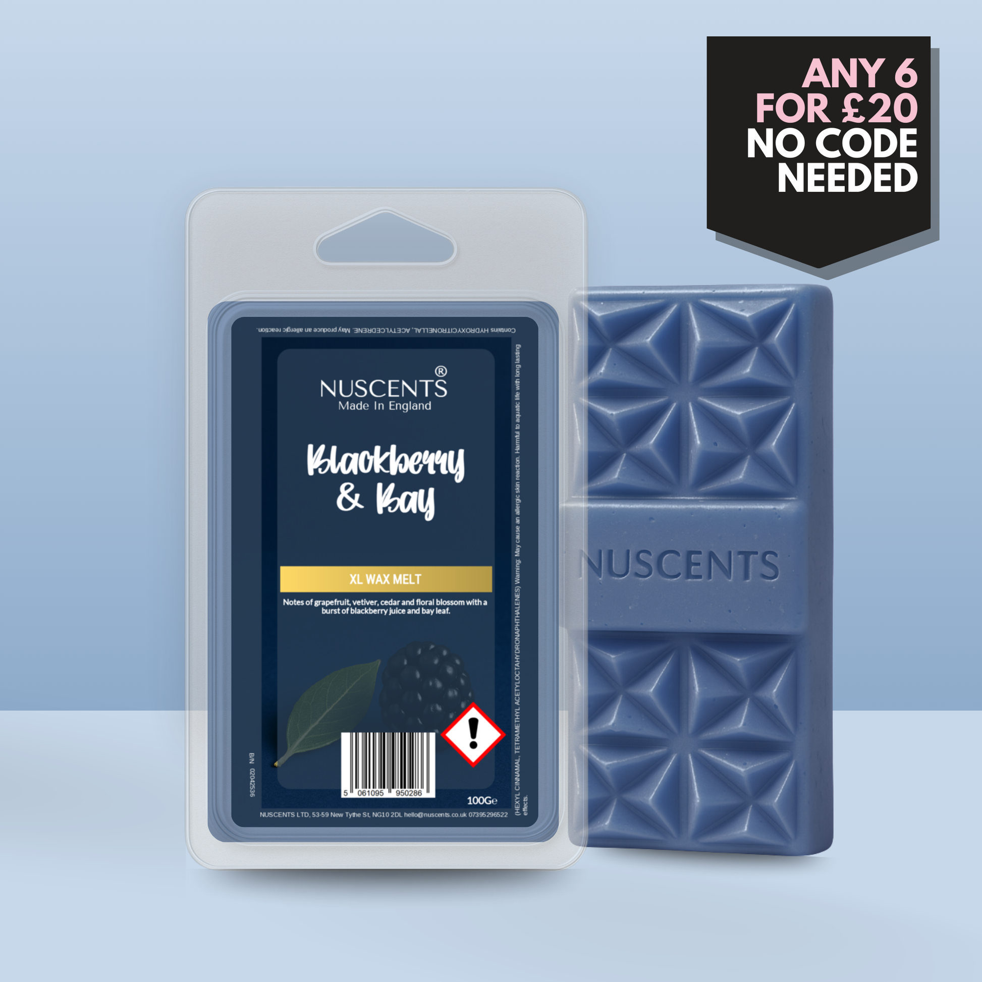 *LAST CHANCE Blackberry & Bay Wax Melt 100g XL A generous 100g wax melt - around twice the size of a standard wax melt - for incredible value and lasting fragrance. Contains multiple segments and large centrepiece wax chunk suitable for large wax warmers. Suitable for both tealight burners and higher-wattage electric warmers, each XL is poured with a full 10% fragrance load to give a strong, room-filling scent. The higher melting temperature ensures a slower release, so whilst early release is slower, you enjoy hours of fragrance from every piece.