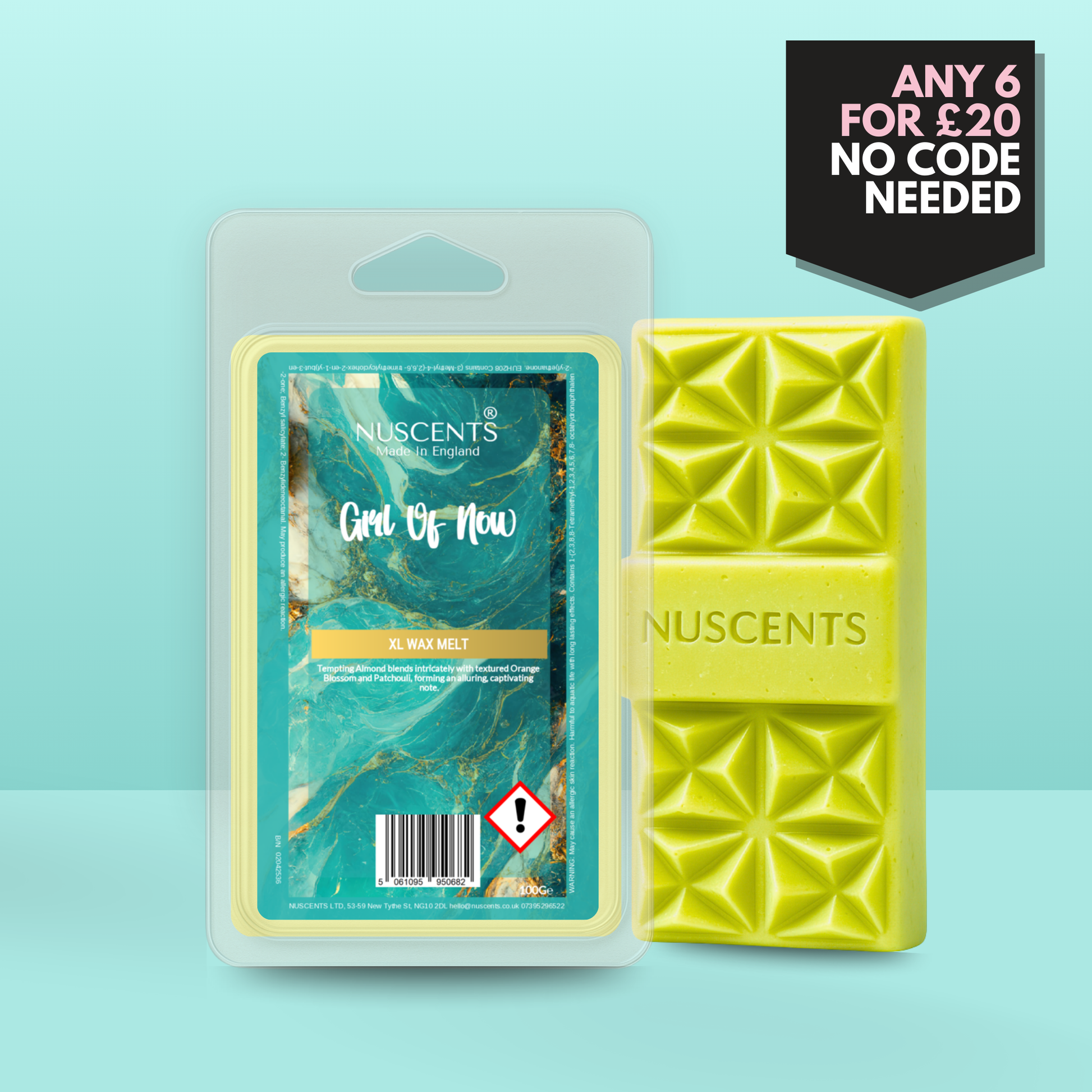 *LAST CHANCE Girl Of Now (ES) Wax Melt 100g XL A generous 100g wax melt - around twice the size of a standard wax melt - for incredible value and lasting fragrance. Contains multiple segments and large centrepiece wax chunk suitable for large wax warmers. Suitable for both tealight burners and higher-wattage electric warmers, each XL is poured with a full 10% fragrance load to give a strong, room-filling scent. The higher melting temperature ensures a slower release, so whilst early release is slower, you enjoy hours of fragrance from every piece.
