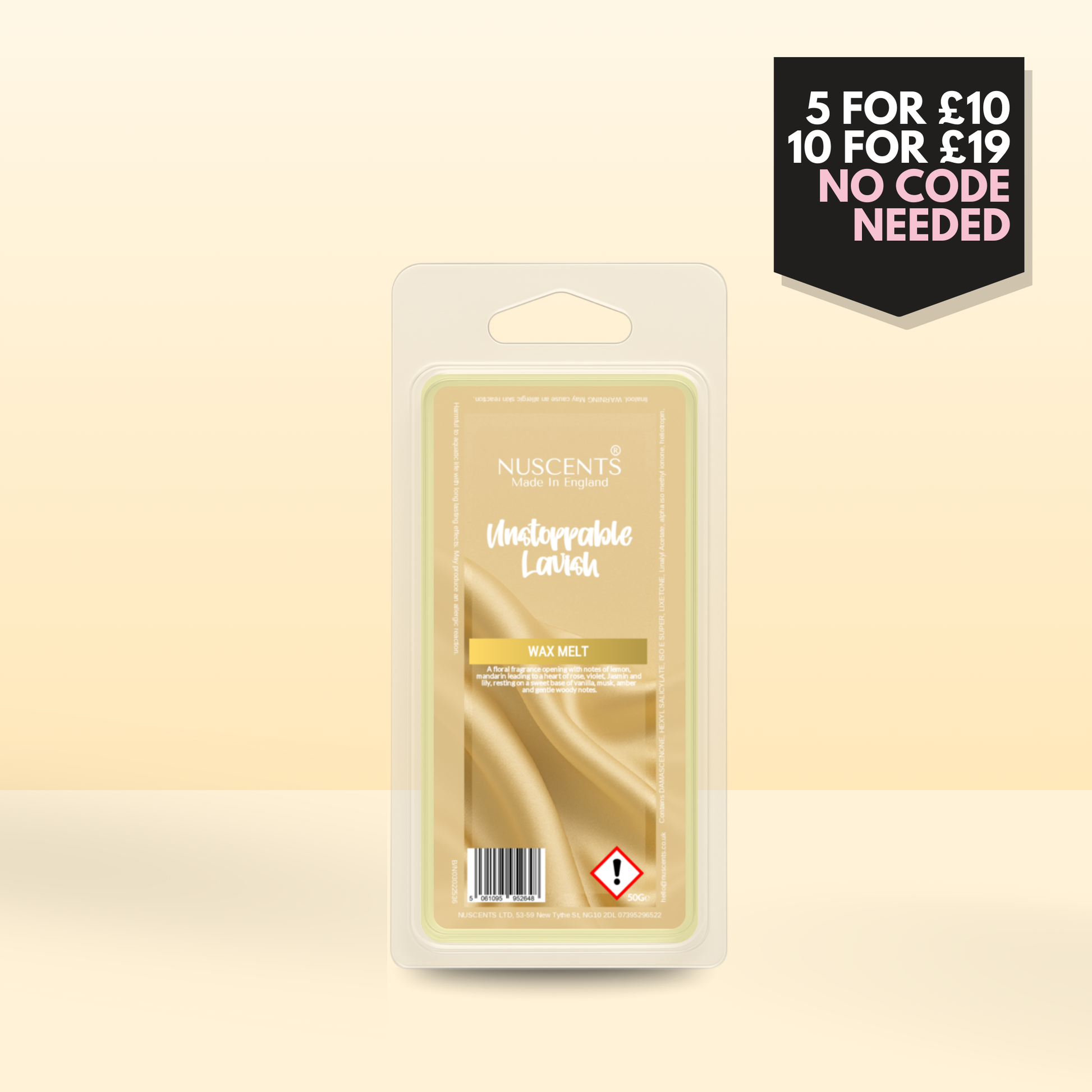 50g Unstoppable Lavish Scented Wax Melt Poured with a full 10% fragrance load for a bold throw and designed to work in both tealight burners and higher-wattage electric warmers. Made In England.