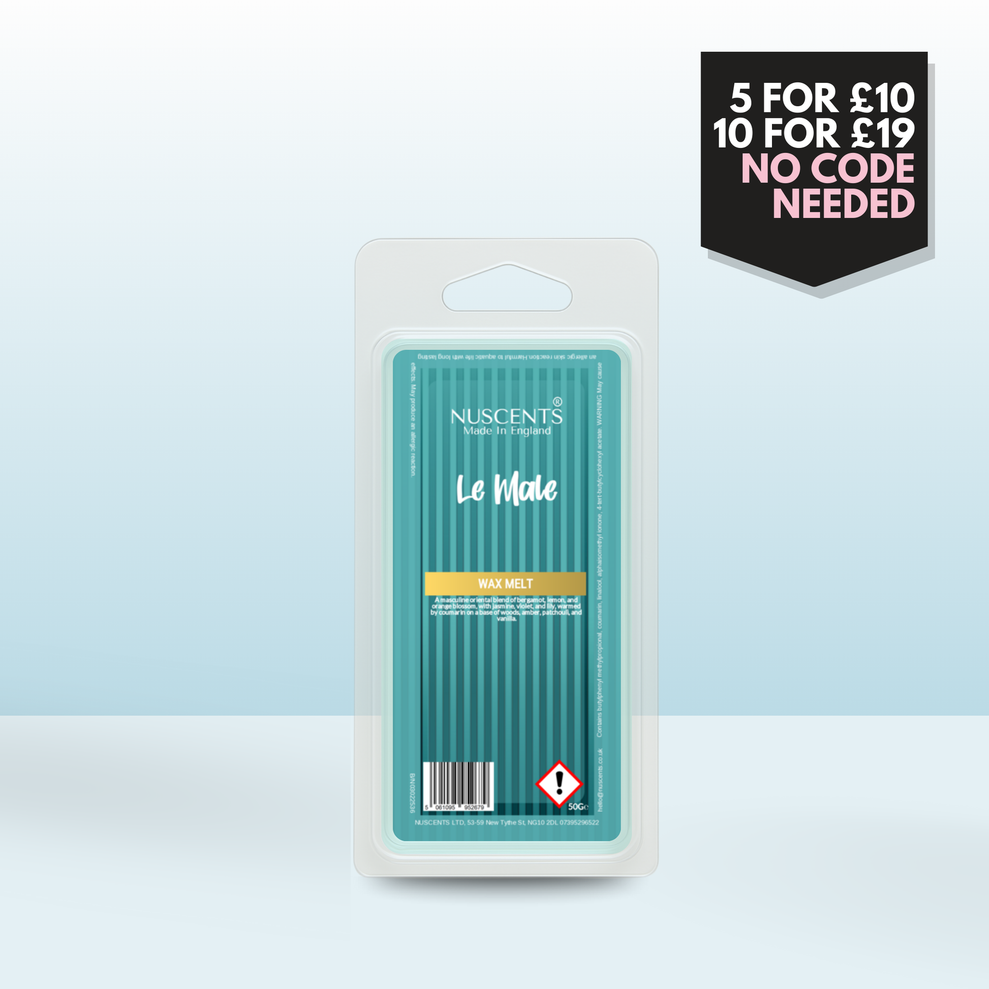 50g *LIMITED EDITION Le Male (JPG) Scented Wax Melt Poured with a full 10% fragrance load for a bold throw and designed to work in both tealight burners and higher-wattage electric warmers. Made In England.