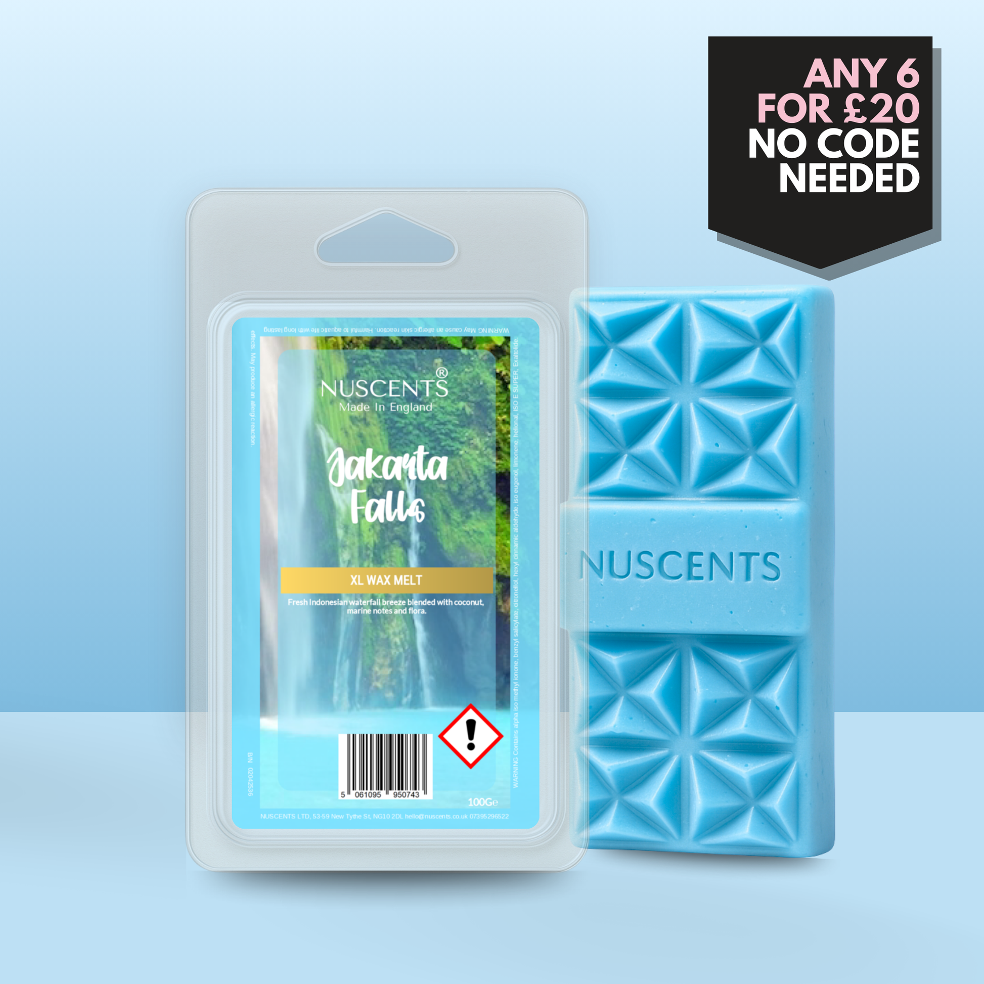 *LIMITED EDITION Jakarta Falls Wax Melt 100g XL A generous 100g wax melt - around twice the size of a standard wax melt - for incredible value and lasting fragrance. Contains multiple segments and large centrepiece wax chunk suitable for large wax warmers. Suitable for both tealight burners and higher-wattage electric warmers, each XL is poured with a full 10% fragrance load to give a strong, room-filling scent. The higher melting temperature ensures a slower release, so whilst early release is slower, you enjoy hours of fragrance from every piece.