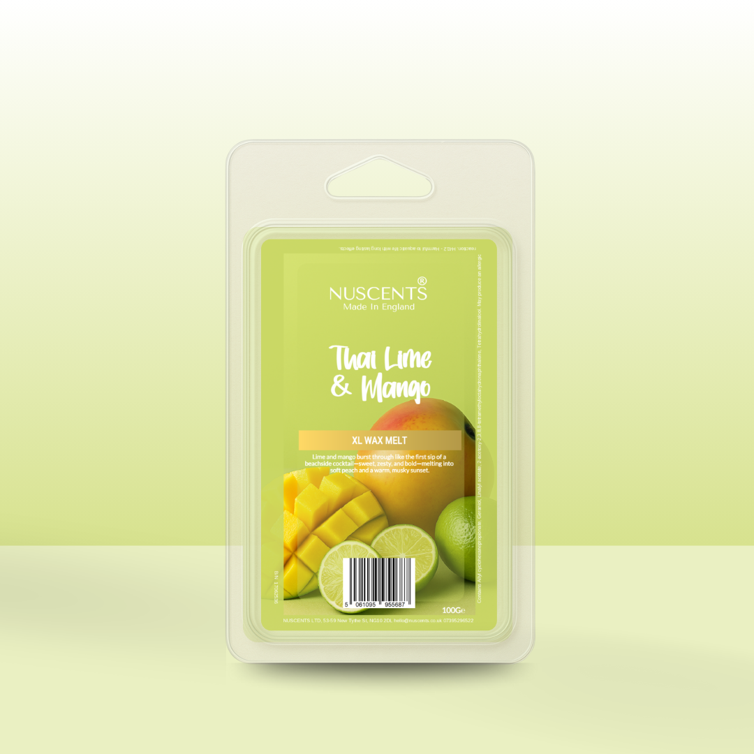 *LIMITED EDITION Thai Lime & Mango Wax Melt 100g XL A generous 100g wax melt - around twice the size of a standard wax melt - for incredible value and lasting fragrance. Contains multiple segments and large centrepiece wax chunk suitable for large wax warmers. Suitable for both tealight burners and higher-wattage electric warmers, each XL is poured with a full 10% fragrance load to give a strong, room-filling scent. The higher melting temperature ensures a slower release, so whilst early release is slower, you enjoy hours of fragrance from every piece.