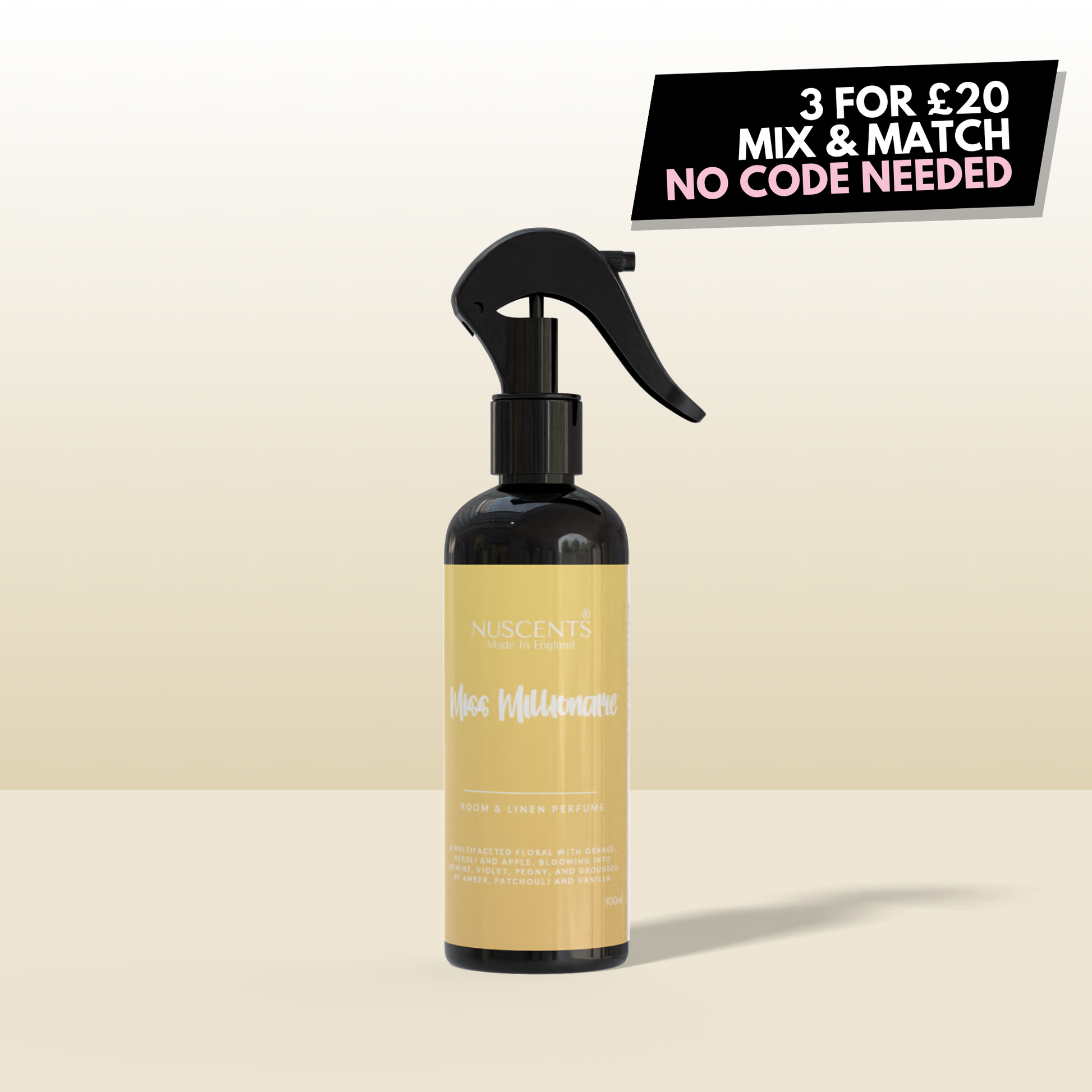 Quickly refresh any room with our Miss Millionaire Room & Linen Perfume Spray