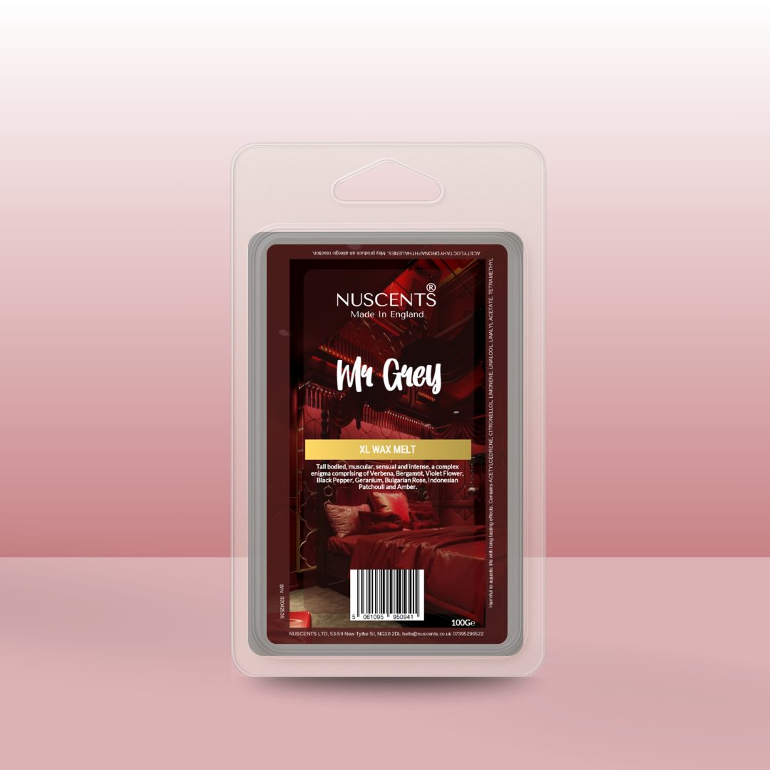 Mr Grey Wax Melt 100g XL A generous 100g wax melt - around twice the size of a standard wax melt - for incredible value and lasting fragrance. Contains multiple segments and large centrepiece wax chunk suitable for large wax warmers. Suitable for both tealight burners and higher-wattage electric warmers, each XL is poured with a full 10% fragrance load to give a strong, room-filling scent. The higher melting temperature ensures a slower release, so whilst early release is slower, you enjoy hours of fragrance from every piece.