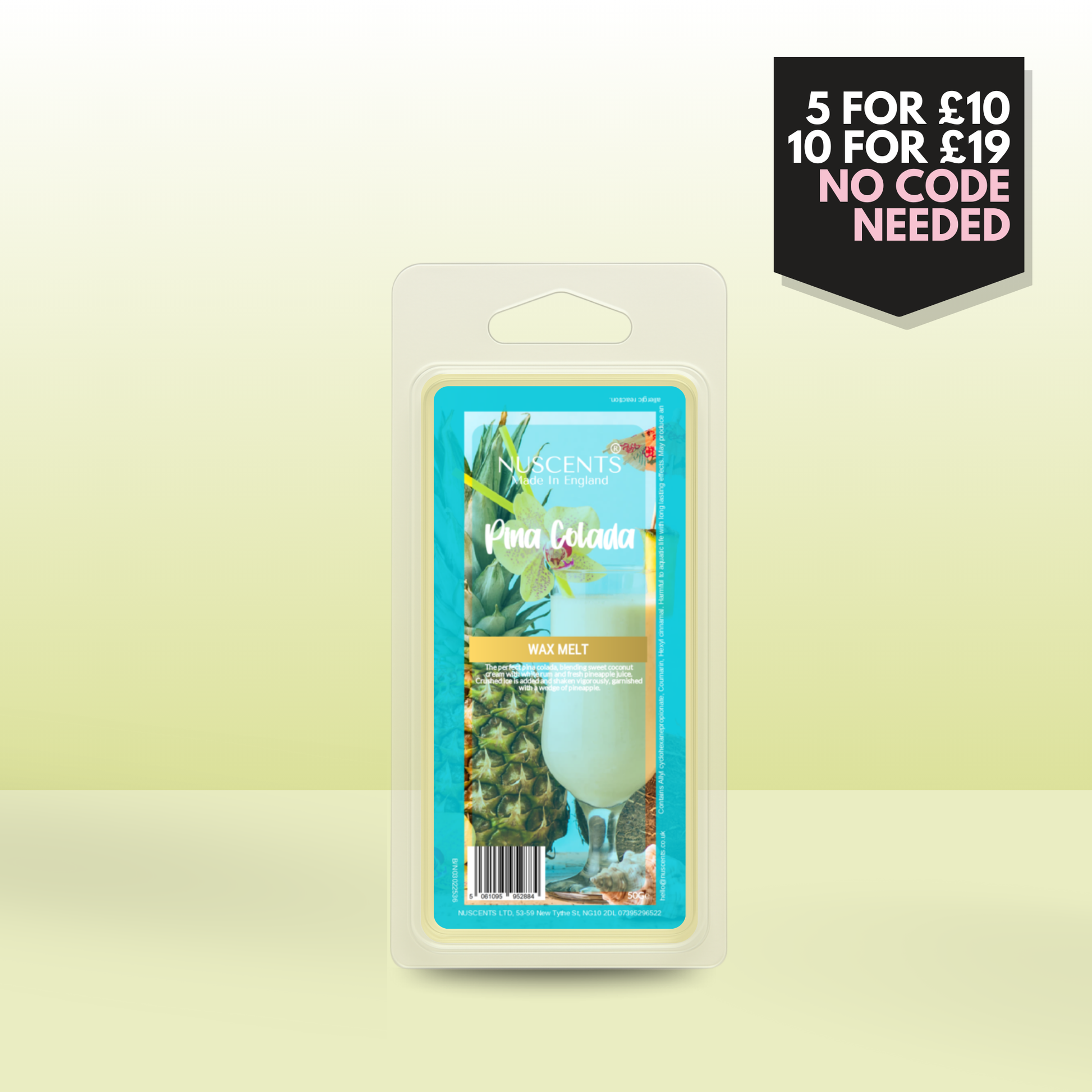 50g *LAST CHANCE Pina Colada Scented Wax Melt Poured with a full 10% fragrance load for a bold throw and designed to work in both tealight burners and higher-wattage electric warmers. Made In England.