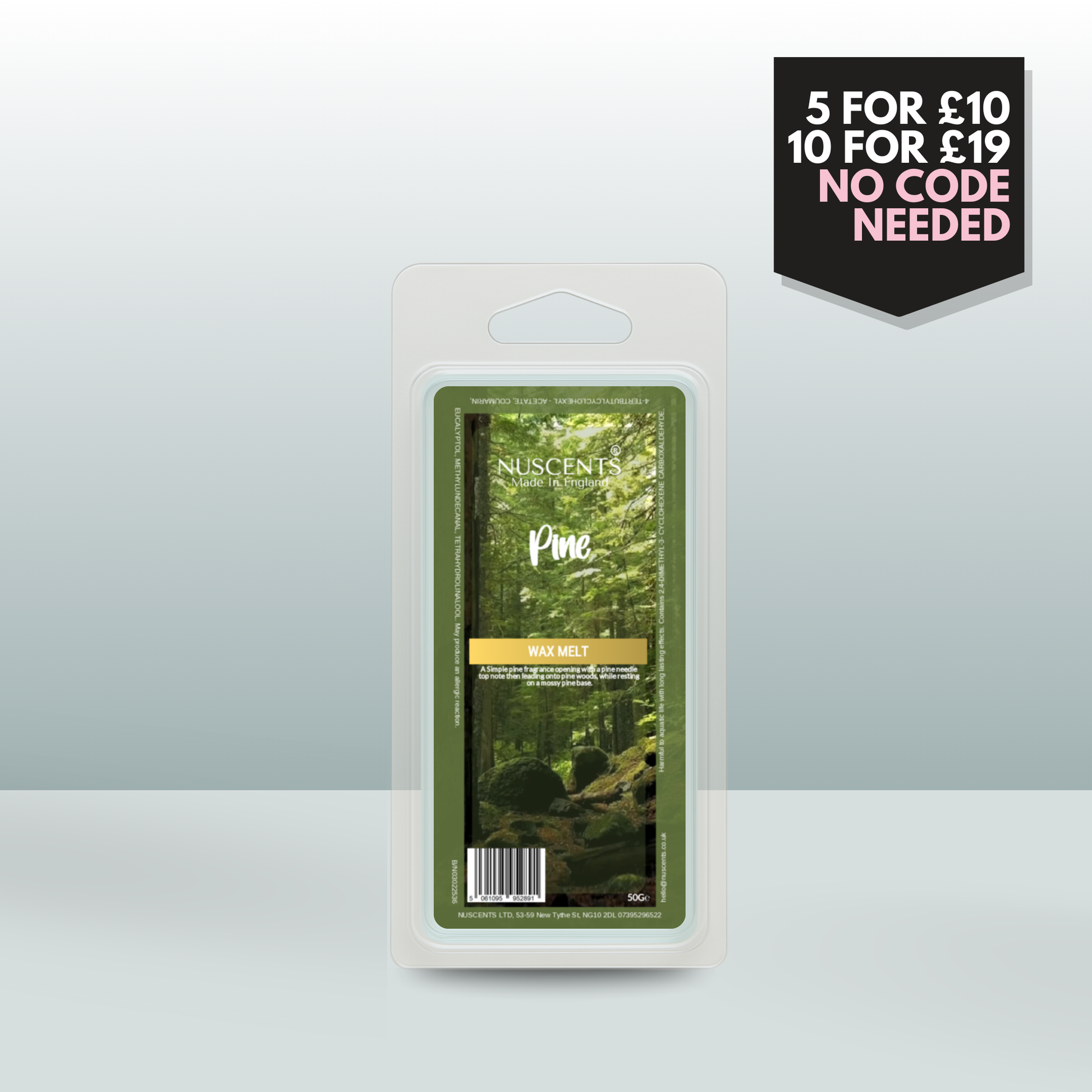 50g Pine Scented Wax Melt Poured with a full 10% fragrance load for a bold throw and designed to work in both tealight burners and higher-wattage electric warmers. Made In England.