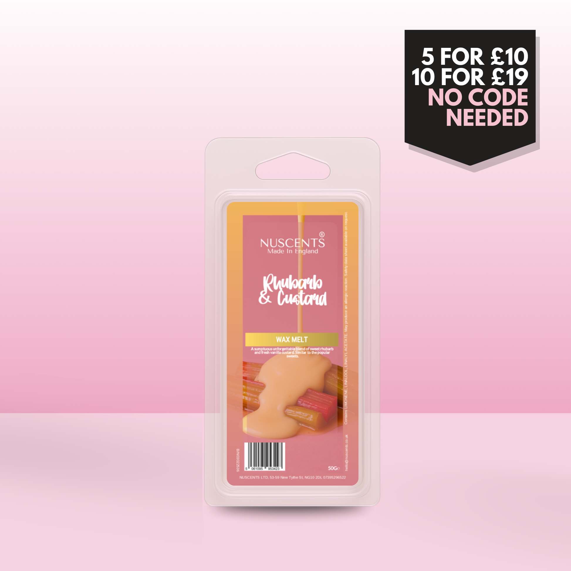 50g Rhubarb & Custard Scented Wax Melt Poured with a full 10% fragrance load for a bold throw and designed to work in both tealight burners and higher-wattage electric warmers. Made In England.