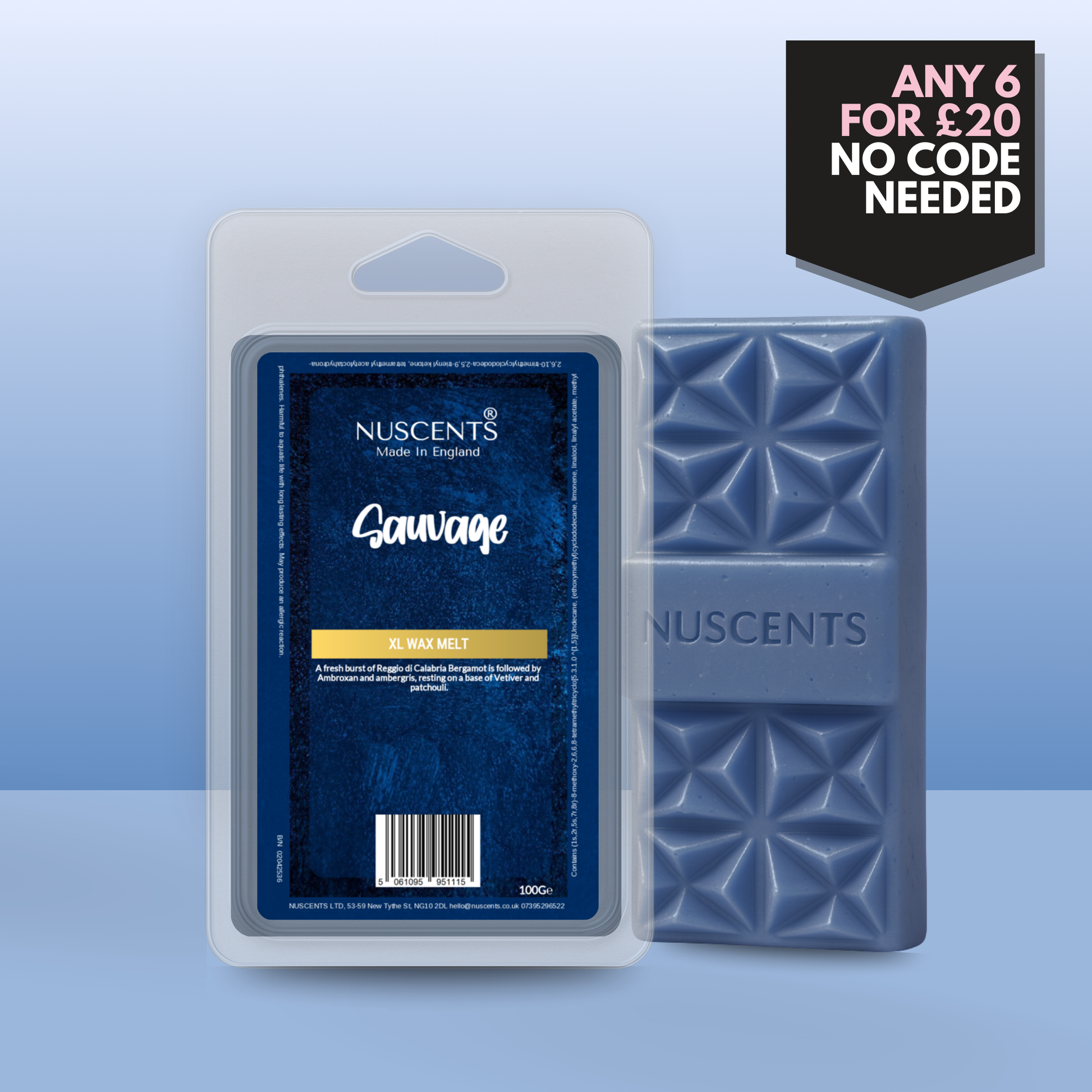 Sausage (SAUVAGE) Wax Melt 100g XL A generous 100g wax melt - around twice the size of a standard wax melt - for incredible value and lasting fragrance. Contains multiple segments and large centrepiece wax chunk suitable for large wax warmers. Suitable for both tealight burners and higher-wattage electric warmers, each XL is poured with a full 10% fragrance load to give a strong, room-filling scent. The higher melting temperature ensures a slower release, so whilst early release is slower, you enjoy hours of fragrance from every piece.