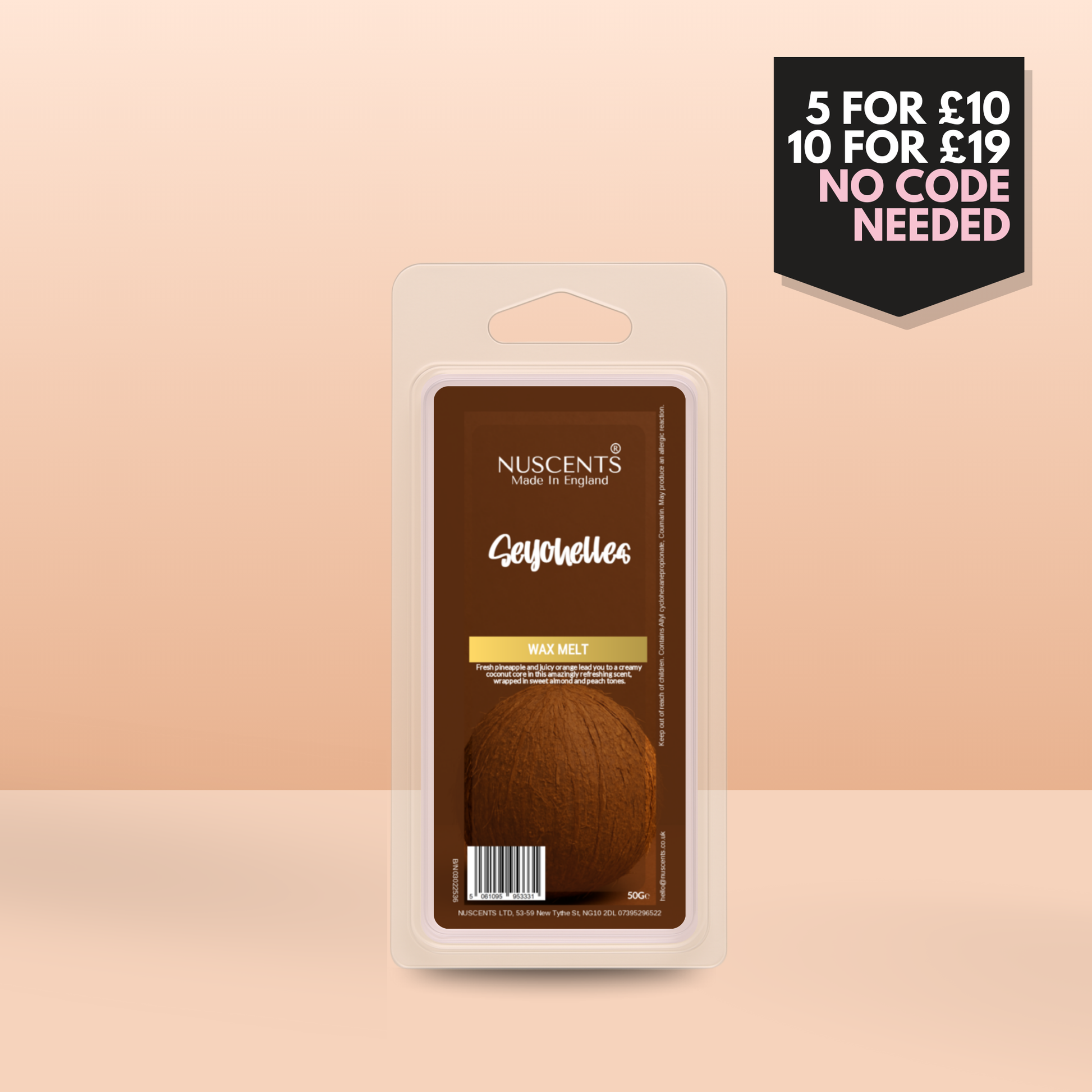 50g *LAST CHANCE Seychelles Scented Wax Melt Poured with a full 10% fragrance load for a bold throw and designed to work in both tealight burners and higher-wattage electric warmers. Made In England.
