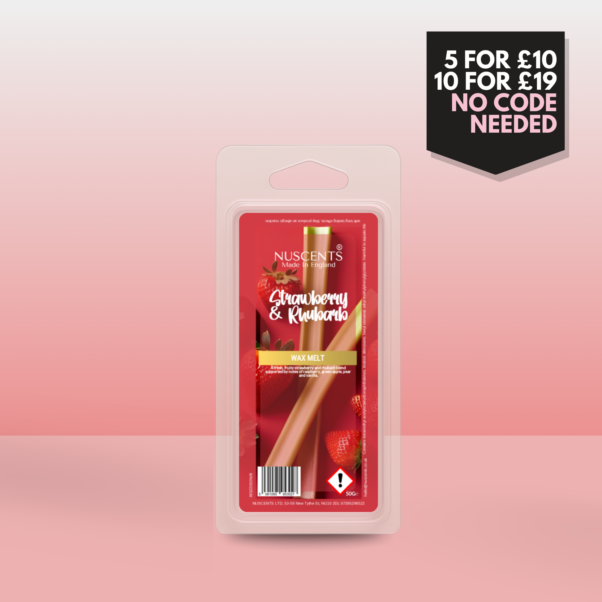 50g Strawberry & Rhubarb Scented Wax Melt Poured with a full 10% fragrance load for a bold throw and designed to work in both tealight burners and higher-wattage electric warmers. Made In England.